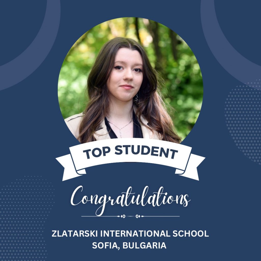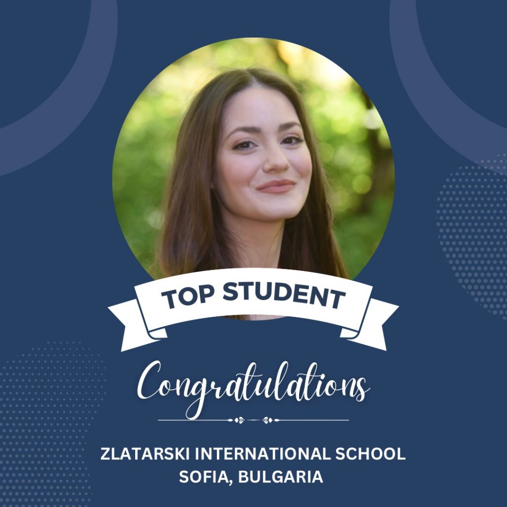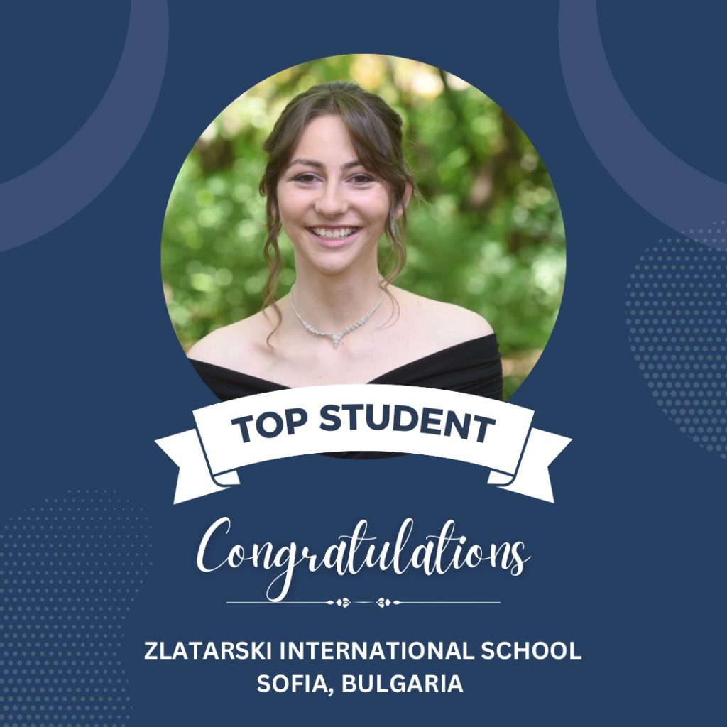 Graduates of Zlatarski International School, following the Bulgarian national programme, in the top 10 this year are: Kalina Koynova (6.00), Ivet Apostolova (6.00), Alexandrina Petkova (6.00), Ira-Maria Vodenska (6.00), Lamitta Basha (6.00), Atanas Dimitrov (5.99), Borislav Grebenarov (5.98), Nicol Dimitrova (5.99), Daniel Zlatev (5.93), Jizel Gencheva (5.94).