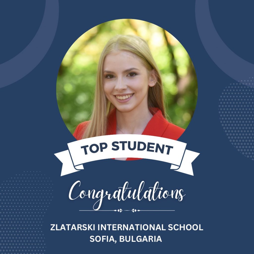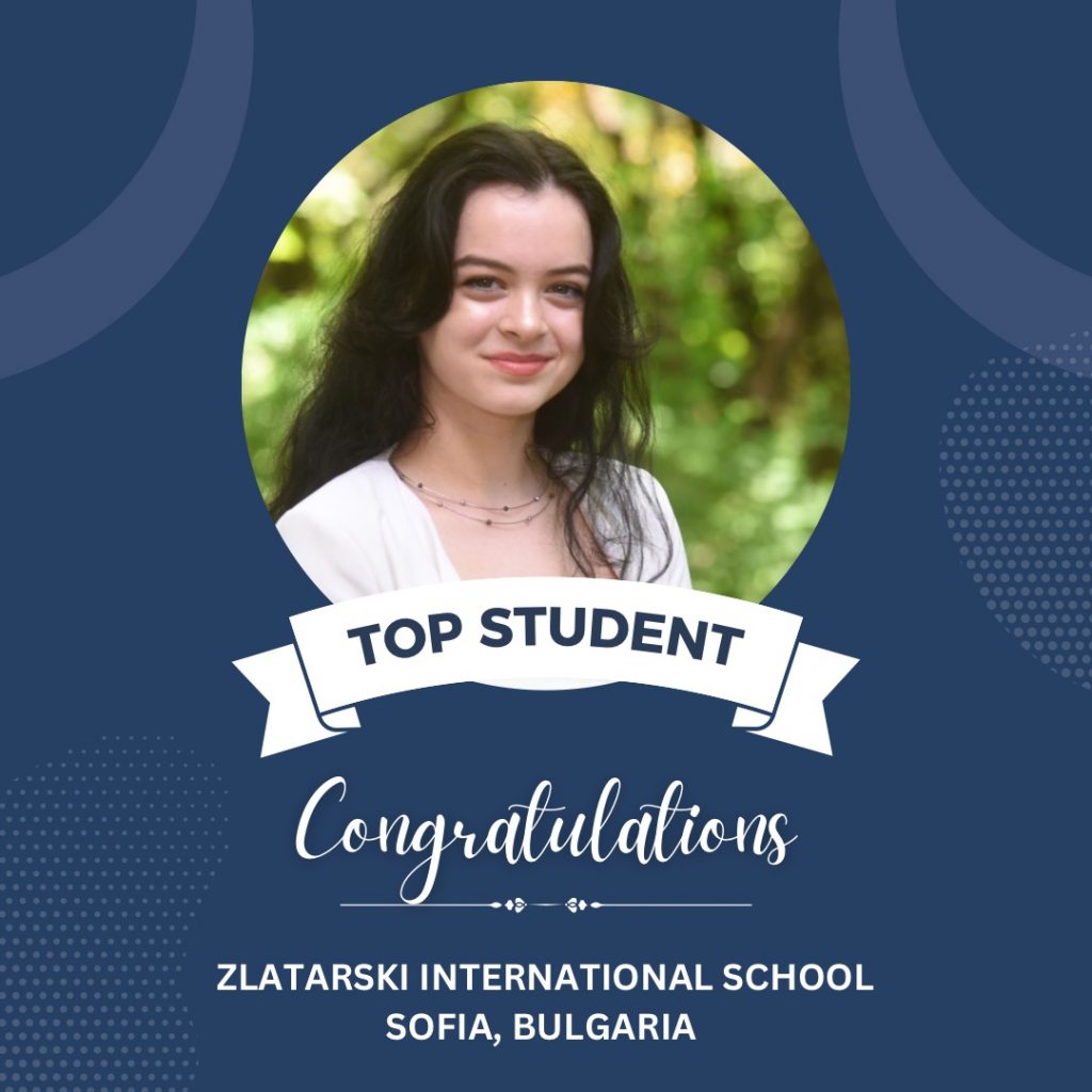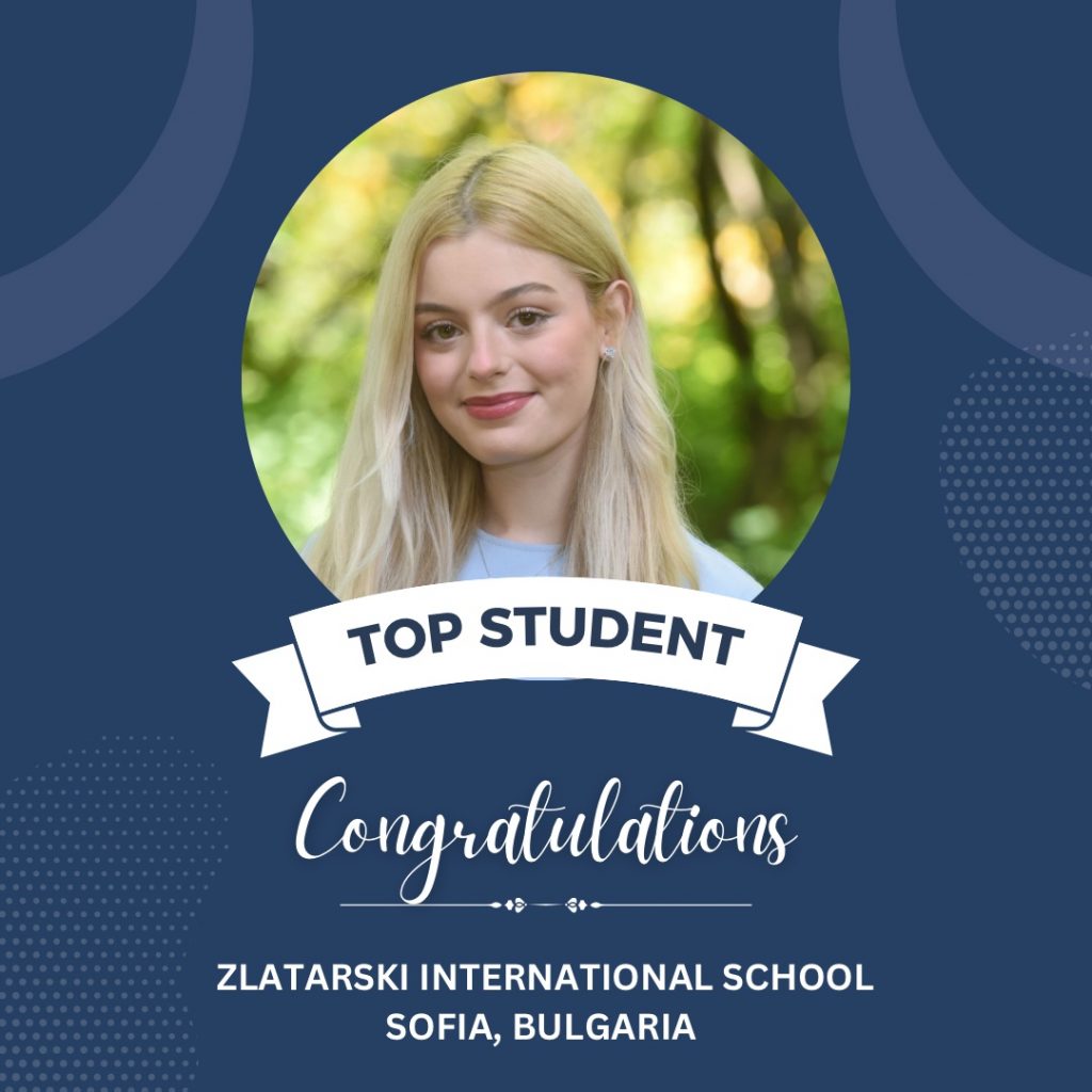 Graduates of Zlatarski International School, following the Bulgarian national programme, in the top 10 this year are: Kalina Koynova (6.00), Ivet Apostolova (6.00), Alexandrina Petkova (6.00), Ira-Maria Vodenska (6.00), Lamitta Basha (6.00), Atanas Dimitrov (5.99), Borislav Grebenarov (5.98), Nicol Dimitrova (5.99), Daniel Zlatev (5.93), Jizel Gencheva (5.94).